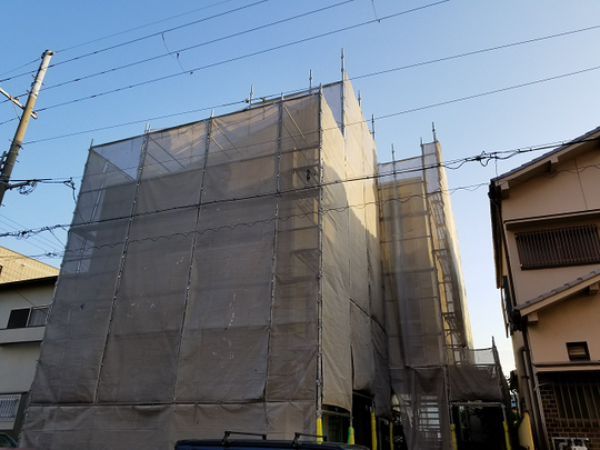 塗装が終わり、足場解体を致します。