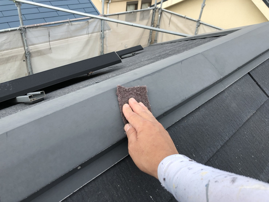 チリ部分を刷毛で