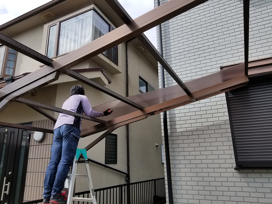台風被害で駐車場のポリカ波板が飛んでしまい