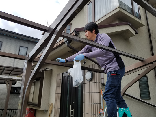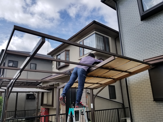 既存ポリカ波板を撤去します