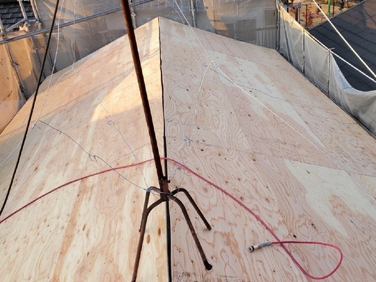 防水シートの設置 (アスファルトルーフィング)