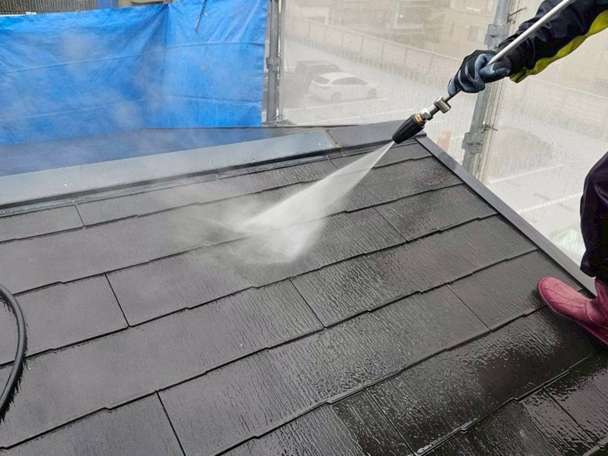 汚れ・苔を洗い流します